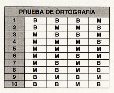 Indica en la frase BIEN o MAL en cada palabra (ABCD) dependiendo de si contiene o no errores ortográficos.