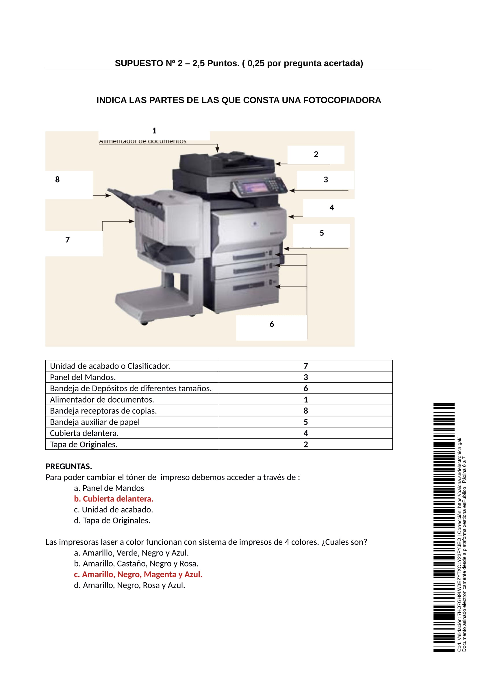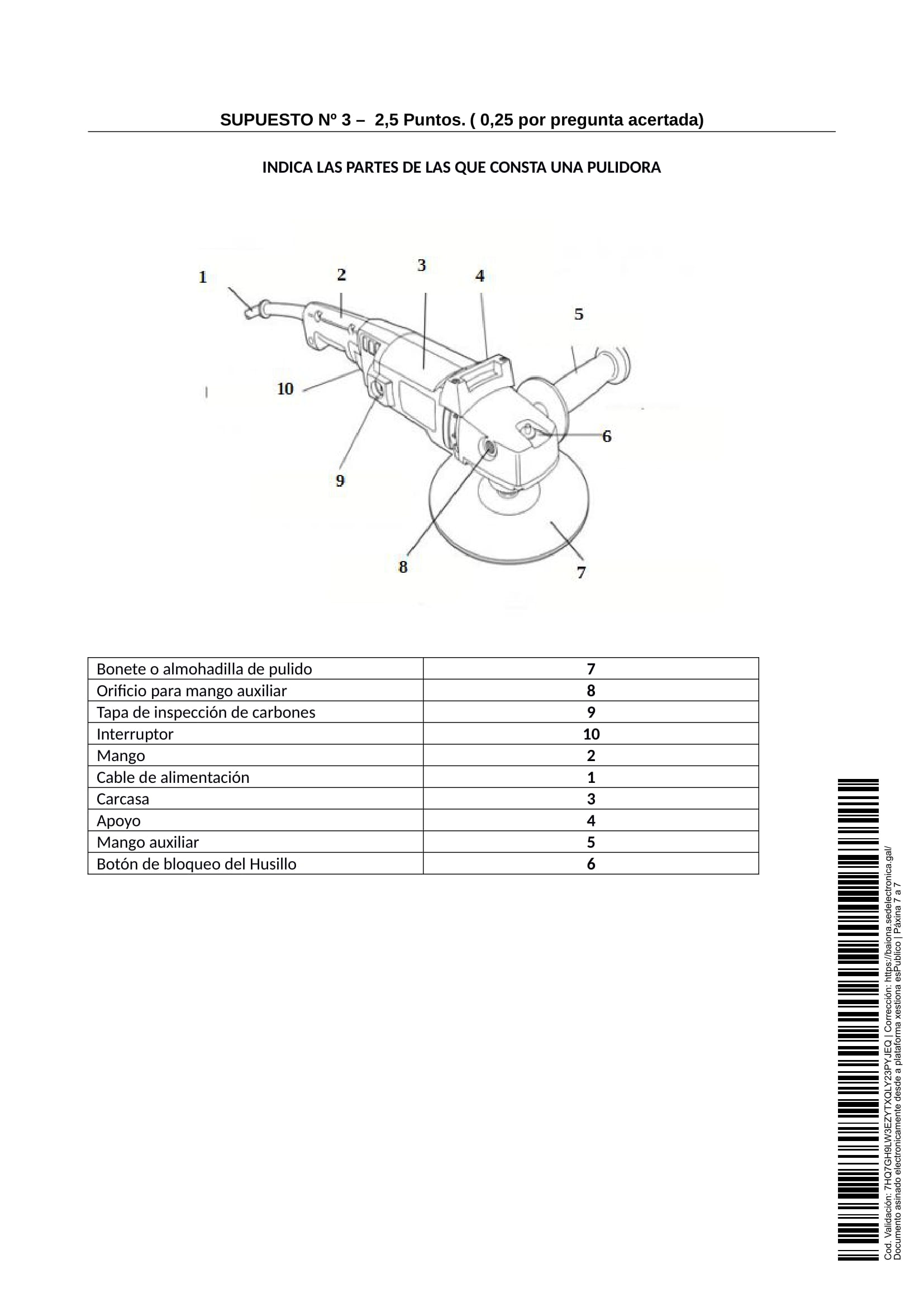 Partes del examen