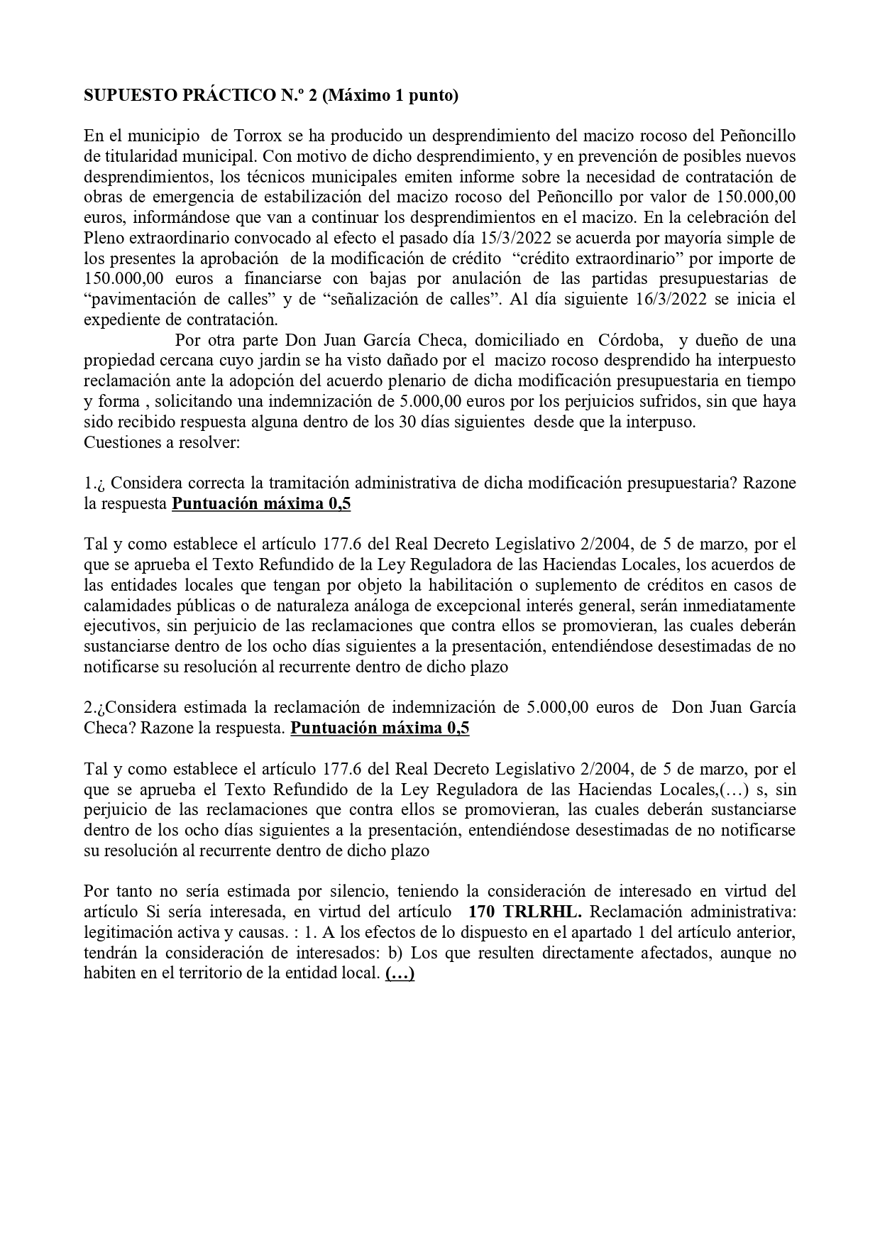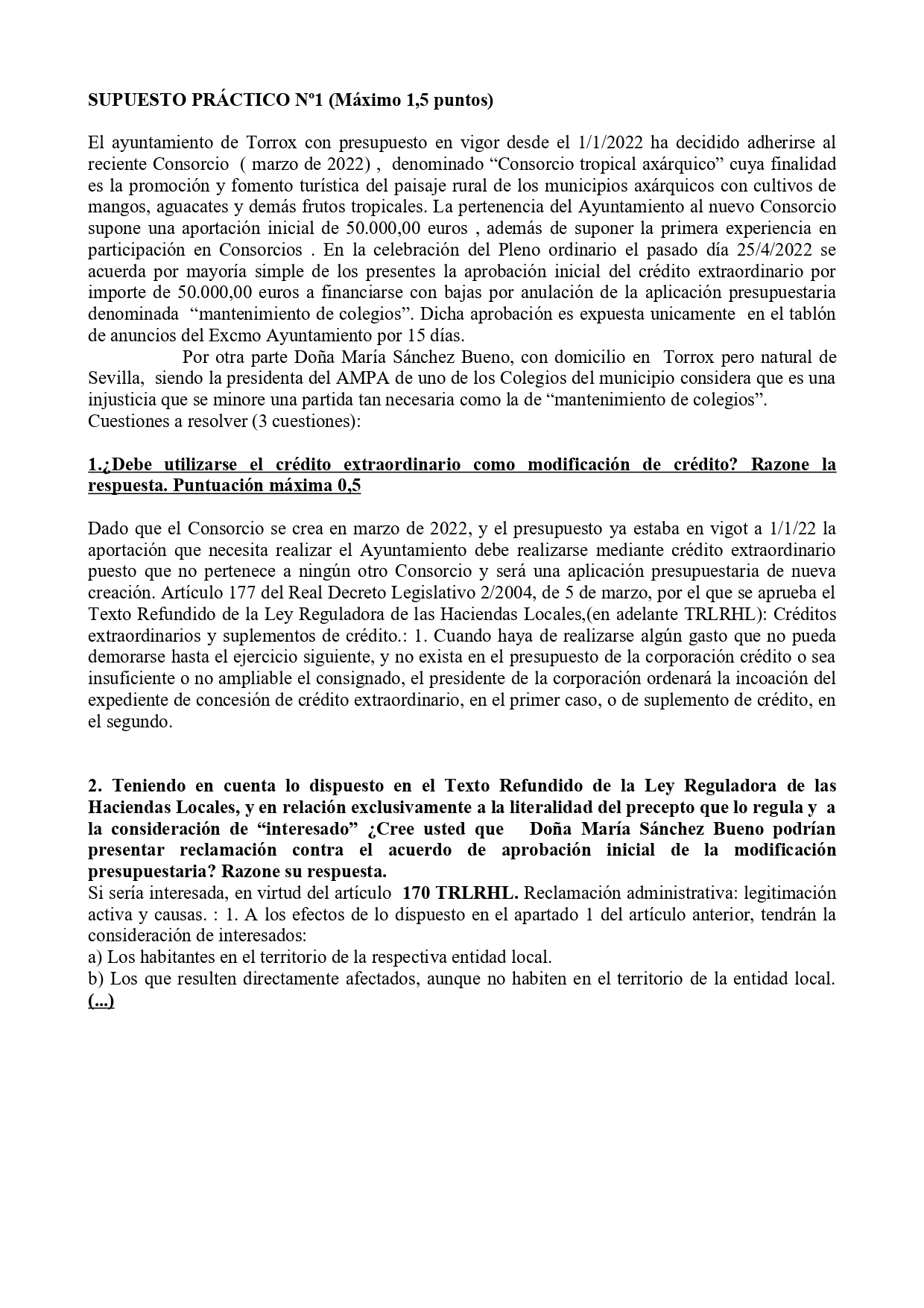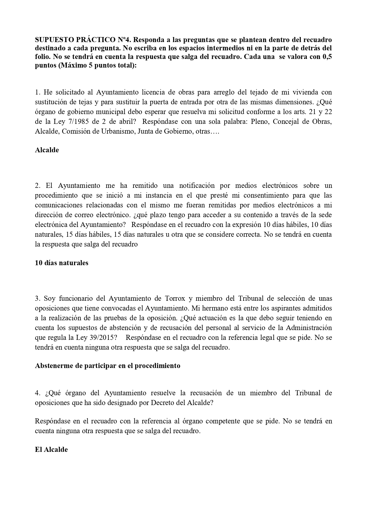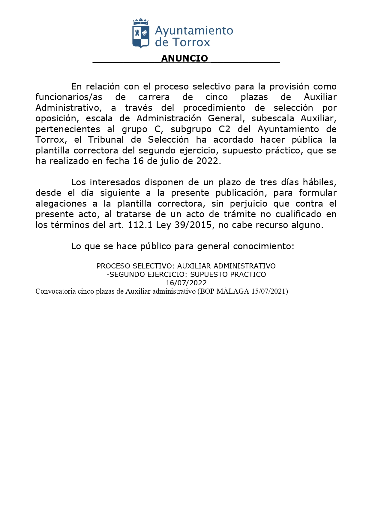 Supuesto práctico Cinco plazas de Auxiliar Administrativo/a Ayuntamiento de Torrox 2022