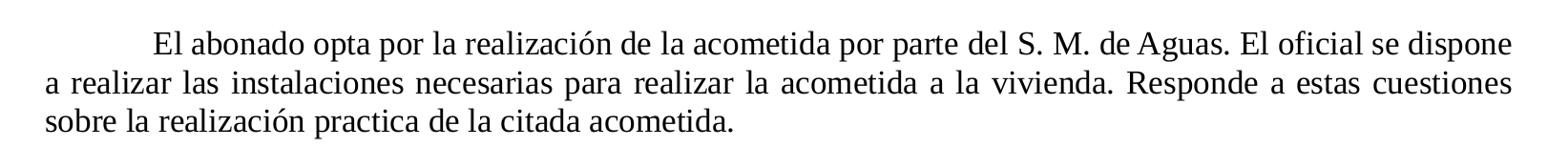 Necesidad de acometida y suministro. Así como de instalar por parte del abonado las válvulas de contador de entrada y salida en el cajetín.