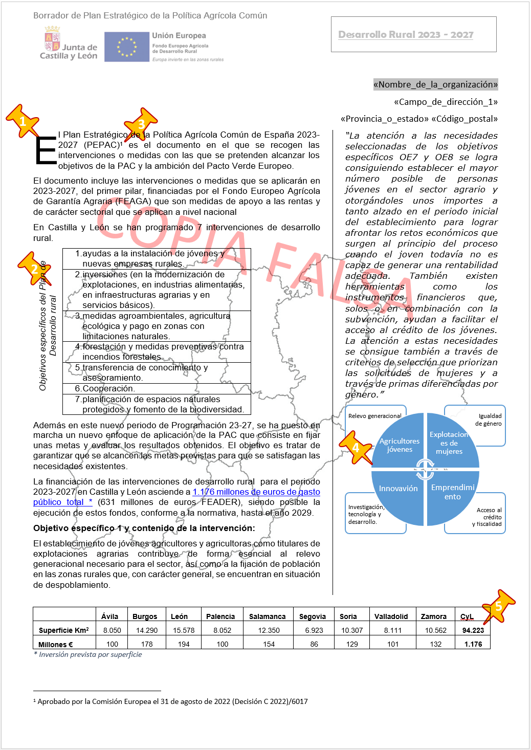 2 - Dentro del supuesto Word, para dar formato a todo el texto que comienza en “El Plan Estratégico” y finaliza en “diferenciadas por género”. ¿Cuál de las opciones siguientes es la correcta?