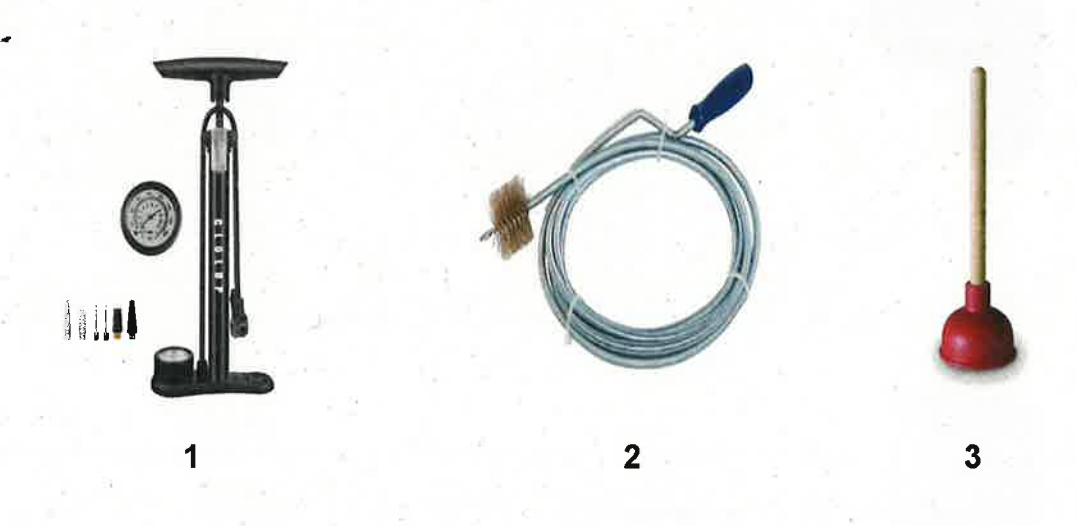 8 - ¿Cuál de las tres herramientas se utilizan para eliminar el atasco en un lavabo?