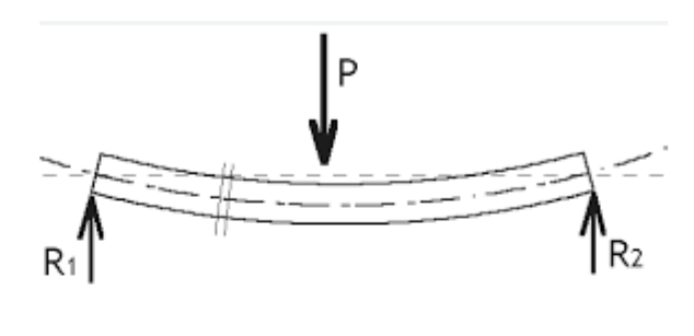 1 - El siguiente esquema representa una viga horizontal apoyada en sus dos extremos, recibiendo una carga P en el centro de la misma.