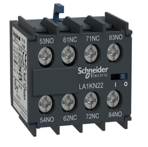 Es un contactor trifásico con neutro que actúa mediante la bobina KN22. Tiene dos contactos NO y dos contactos NC.