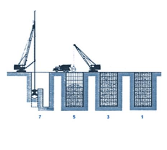 7 - La imagen muestra un esquema de la construcción de pantallas de hormigón armado (HA). ¿Cuál de las siguientes afirmaciones es cierta?