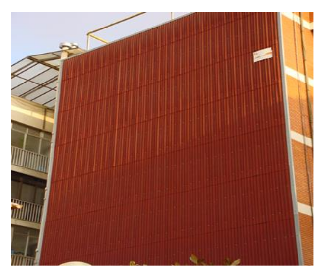 Un tabique pluvial, realizado habitualmente con aislamiento de poliestireno y acabado de placas atornilladas de distintos posibles materiales.