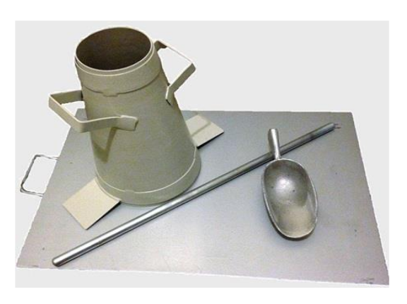 Un cono de Abrams, que sirve para valorar la consistencia del hormigón.