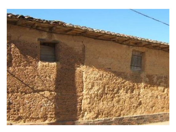 Una pared de cerramiento realizada con piedra revestida con barro.