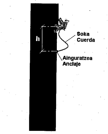 10 - Según el siguiente dibujo en caso de caída, siendo h la altura del anclaje (que es fijo) y el punto de anclaje (que es fijo) y l la longitud de la cuerda: