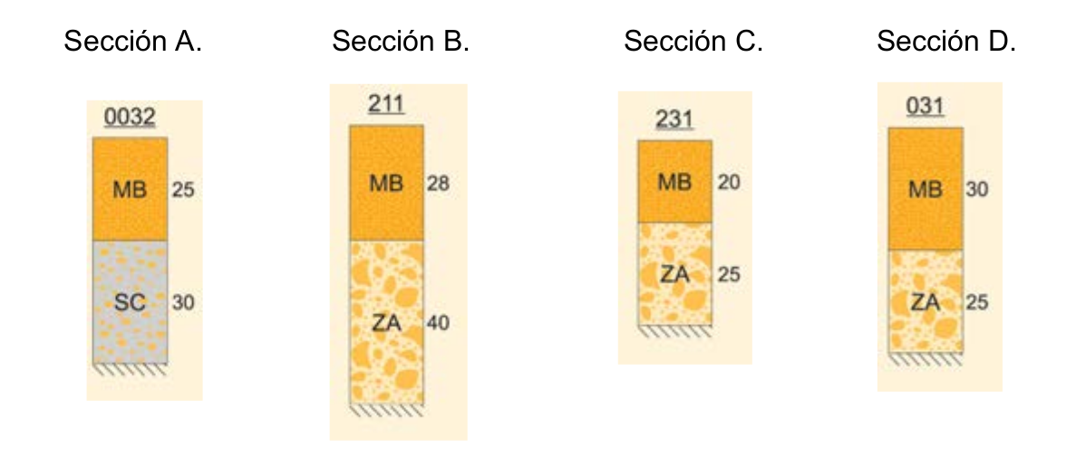 A continuación tenemos varias opciones de secciones de firmes:
