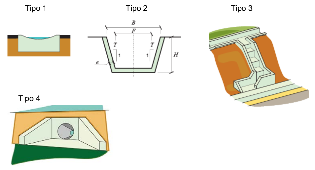 9 - Necesitamos utilizar cunetas como drenaje superficial de la plataforma y los márgenes. Entre las opciones del enunciado elige el que se corresponde con una cuneta: